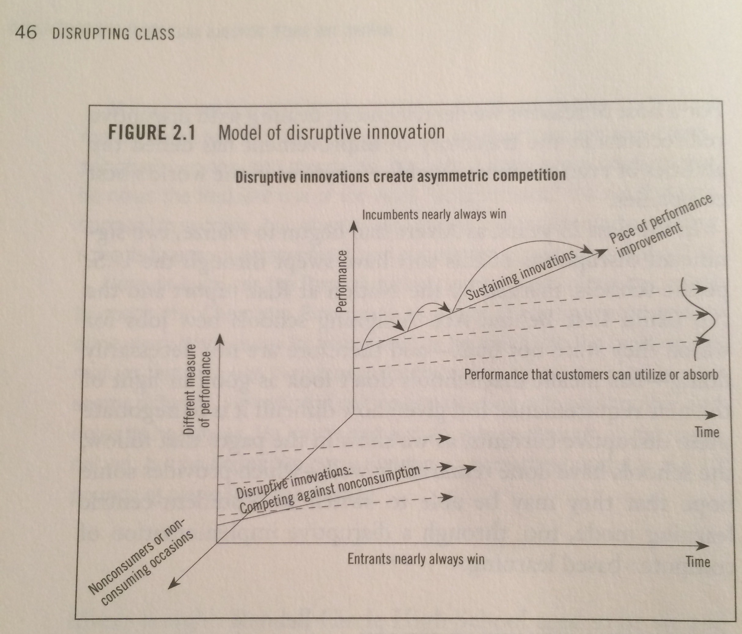 Do not read this book, but if you do, please only read chapters 2-5. The authors’ do give a compelling argument for the way disruptive innovation happens, and there are certainly some good ideas for how to approach changing the educational system in there. Outside of that, see my comments below.